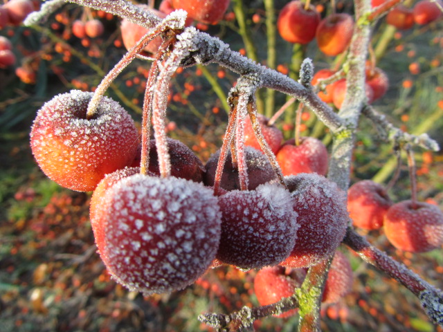 una "ragazza" dai capelli neri e la pelle bella e tesa come solo i giovani possono avere, con tanti sogni e fantasia da vendere, con mille passioni da far conciliare con famiglia e lavoro e, tra varie acrobazie, non ne ha mai tralasciate soprattutto due...leggere e scrivere. Un bel giorno decise di mandare una lettera ad un giornale che indiceva un concorso con un premio molto allettante...un cuore in oro bianco e diamanti....ma la "ragazza"non si fece tentare dal valore del premio bensì dal tema proposto: il titolo diceva più o meno così..."descrivi il tuo rapporto con la tecnologia" ...ancora non c'erano i cellulari, non tutti avevano il microonde e il computer era un lusso per pochi, quindi la lettera fu scritta a mano(in assenza di una macchina da scrivere), spedita e....dimenticata! Dopo circa tre mesi, "la ragazza" si vide recapitare un pacchetto sconosciuto....non ci crederete ma aveva vinto, il suo racconto era stato pubblicato(ovviamente richiese subito la copia della rivista che aveva perso...quando si hanno tanti impegni succede pure questo!!!). "Il racconto parlava della vita semplice eppure tanto ricca della "ragazza" in questione, delle torte fatte in casa, dell'avversione per il microonde(che si è fatta passare), dei lavori a punto croce e di un giardino che ancora doveva nascere e si diceva felice e soddisfatta di non avere un computer perchè la sua vita era già piena di tante bellissime cose e si chiedeva come un pc avrebbe potuto darle soddisfazione! Morale della favola..."la ragazza" non ha più i capelli neri, la pelle non è più tanto tesa, ha scoperto che il microonde fa risparmiare tempo in cucina(per certe cose eh?) e soprattutto....sente che le manca qualcosa quando il computer si blocca(come nei giorni scorsi e per l'ennesima volta!) e lei non riesce a contattare le sue amiche blogger...si, nel frattempo "la ragazza" si è pure creata un blog...con una fatica immane perchè ancora per la tecnologia è proprio negata...ma fa del suo meglio...e spera di essere scusata per non aver risposto ai tanti commenti ricevuti! Per farsi perdonare vi regala un pò di foto del suo amato giardino velato dalla brina mattutina...