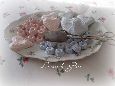 Non potete immaginare quanto mi piaccia fare i gessi profumati..ne ho fatti quintali!!! Appena sto meglio devo cercare altri stampi....beh, quelli a forma di pasticcino sono deliziosi non trovate?...e che dire delle profumazioni...lavanda, frutti di bosco, rosa, talco, mughetto, muschio bianco...una meraviglia!