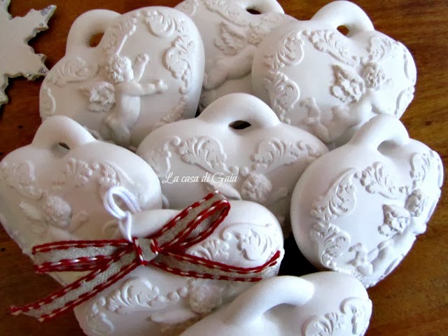 ...e così ne approfitto per mostrarvi i cuori in gesso profumato che sto realizzando in questi giorni...li trovate QUA' e QUA' assieme a tante altre idee regalo per Natale.