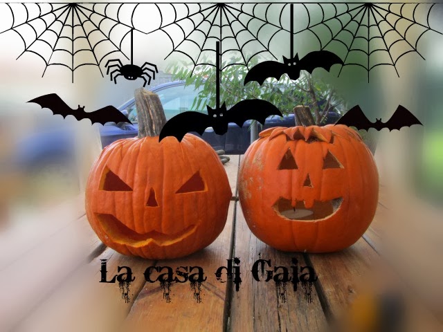 Chiara non vede l'ora,Alessandra ha intagliato le zucche che metterà ai lati del portone con le candele all'interno..all'imbrunire le accenderà e poi..via tutti a scherzare e ridere un pò...dimenticavo...anche Maddalena ha il suo cappellino da streghetta eh?