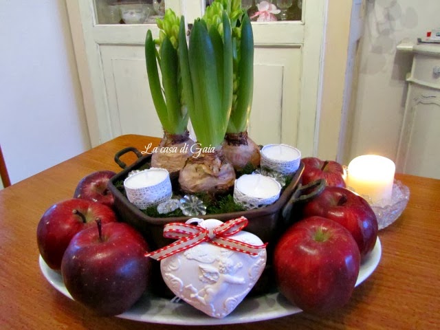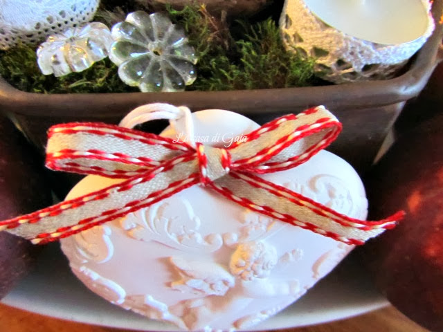 Ho utilizzato le stesse decorazioni dell'anno scorso..ho solo aggiunto qualche cristallo e applicato ai centrini le iniziali di tutti quanti noi...anche di chi non c'è più.