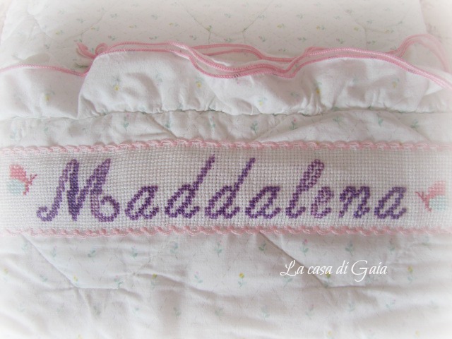 Devo dire che l'influenza mi ha resa più produttiva del solito e così mi sono sbizzarrita in lavori di cucito per bimbi ed ho assemblato due ricami a punto croce che mia figlia ha preparato per Chiara e Maddalena..a proposito...manca poco ragazze e poi mi ritroverò con un'altra piccolina che gironzola per casa.