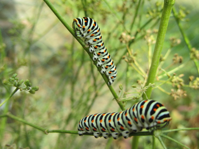 ...bruchetti stranissimi (larve di Papilio Machaon)che hanno mangiato tutto il prezzemolo...