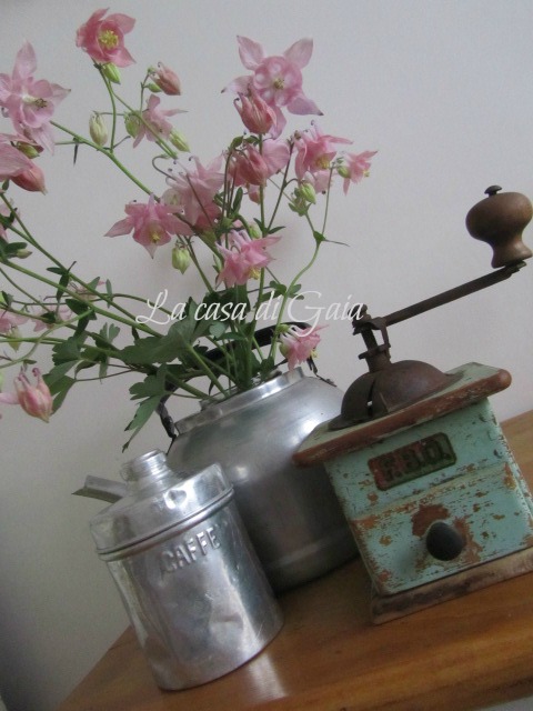 Vi lascio foto del mio ultimo acquisto shabby...un meraviglioso macinino da caffè veramente shabbato dal tempo...vintage che più di così non si può...di un bell'azzurro scolorito o verde acqua... proprio come piace a me e credo anche a qualcuna di voi...che ne dite?