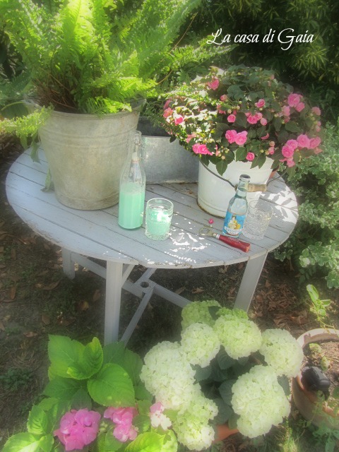 Ho preparato latte e menta e gassosa fresca, ci sono solo due bicchieri in foto ma posso aggiungerne ed in frigo ho altre bevande...vi sedete in giardino con noi? Ci farebbe proprio piacere!