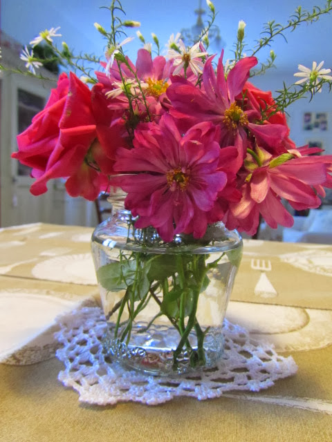 ...ma questa mattina non siamo solo io e Simona...Amelia è con noi anche se non fisicamente...è presente con le sue tovagliette meravigliose usate per apparecchiare il tavolo...