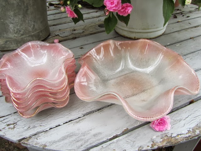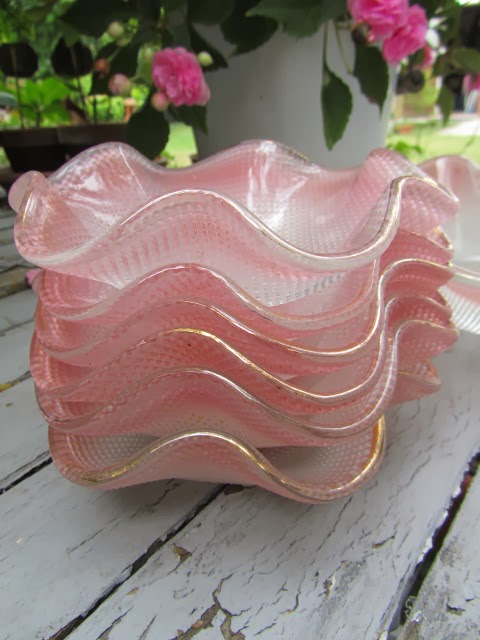 Servizio in vetro rosa sfumato risalente agli anni "40. €25