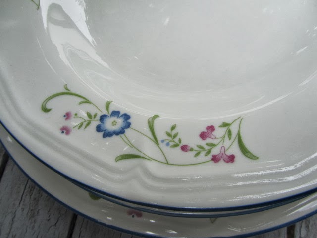 Servizio di tre piatti fondi e tre piani con delizioso decoro a fiorellini. €12