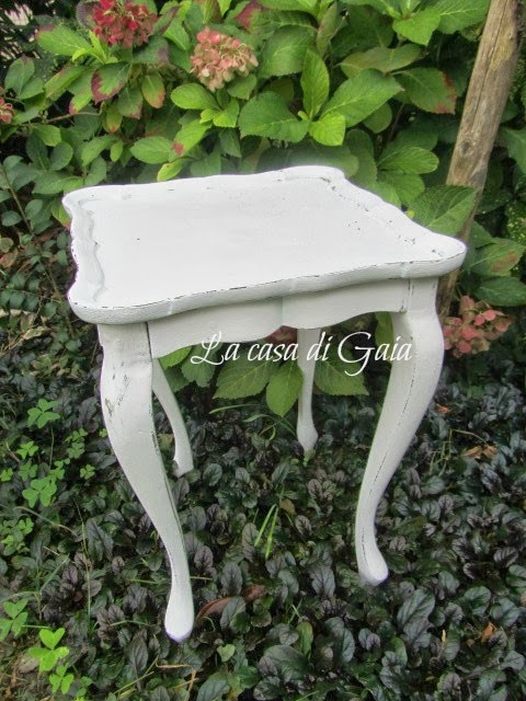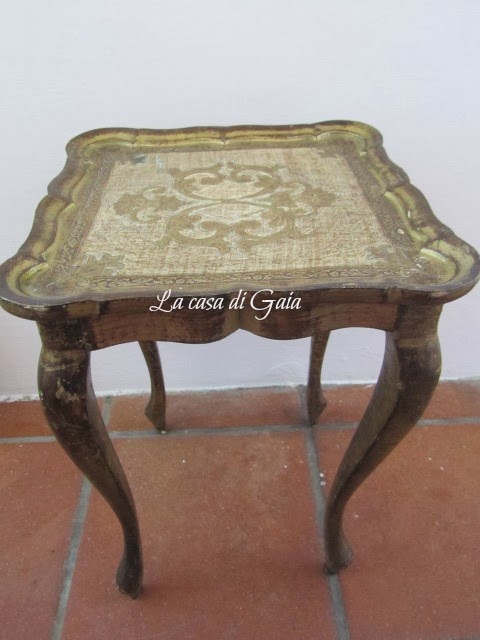 Questo è un tavolino che mio genero ha salvato mentre stavano per buttarlo e ha ben pensato di portarmelo..non mi dispiaceva com'era in origine (lo vedete in una foto sotto) ma in casa mia non ci stava per niente bene...ora fa tutto un altro effetto!