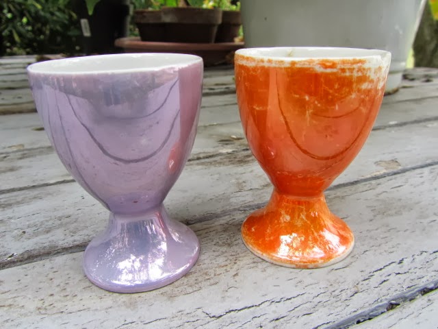 Vecchissimi ed usurati porta uovo...lilla e arancio. €3 ciascuno