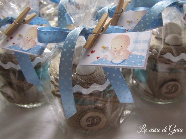 ..e visto che si parla di bomboniere,queste sono per il Battesimo di Daniel...vasetti con all'interno i confetti e personalizzati con tags in legno...