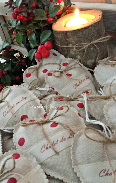Cuori imbottiti di lavanda da appendere alle ante degli armadi di Chalet du Lys,un meraviglioso rifugio di montagna.
