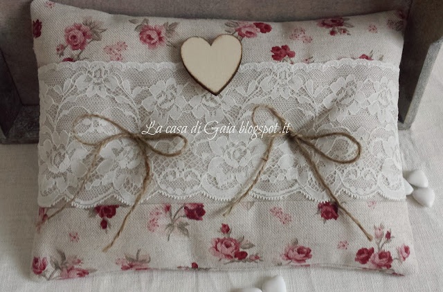 Cuscino porta fedi e guest book un pò alternativi perchè a volte bisogna anche osare..quindi non il solito lino grezzo o bianco,sempre tanto richiesti,ma un misto lino a roselline,finissimo pizzo valencienne,corda e cuori in legno da personalizzare con le iniziali degli sposi.