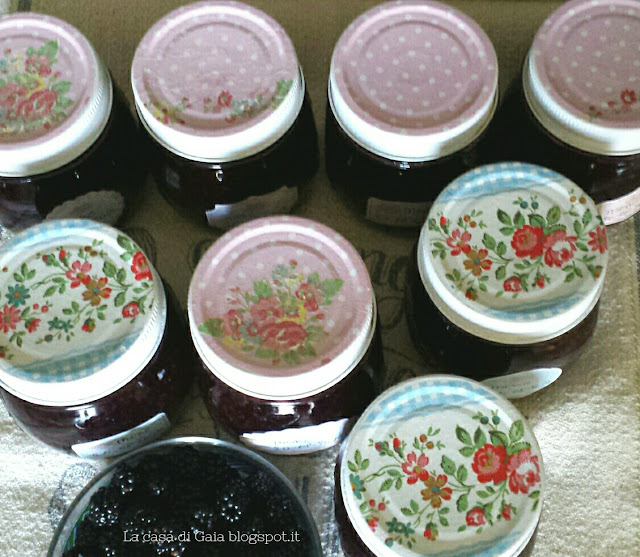 Il caldo torrido e la mancanza di pioggia hanno seccato in anticipo le more selvatiche ma mio marito e Chiara,sono comunque riusciti a raccoglierne 4kg...giusti giusti per fare sette vasetti di confettura e otto di more caramellate..per capirci,non sono altro che more lasciate intere..io le uso per guarnire il gelato o la mousse di panna e yogurt greco.