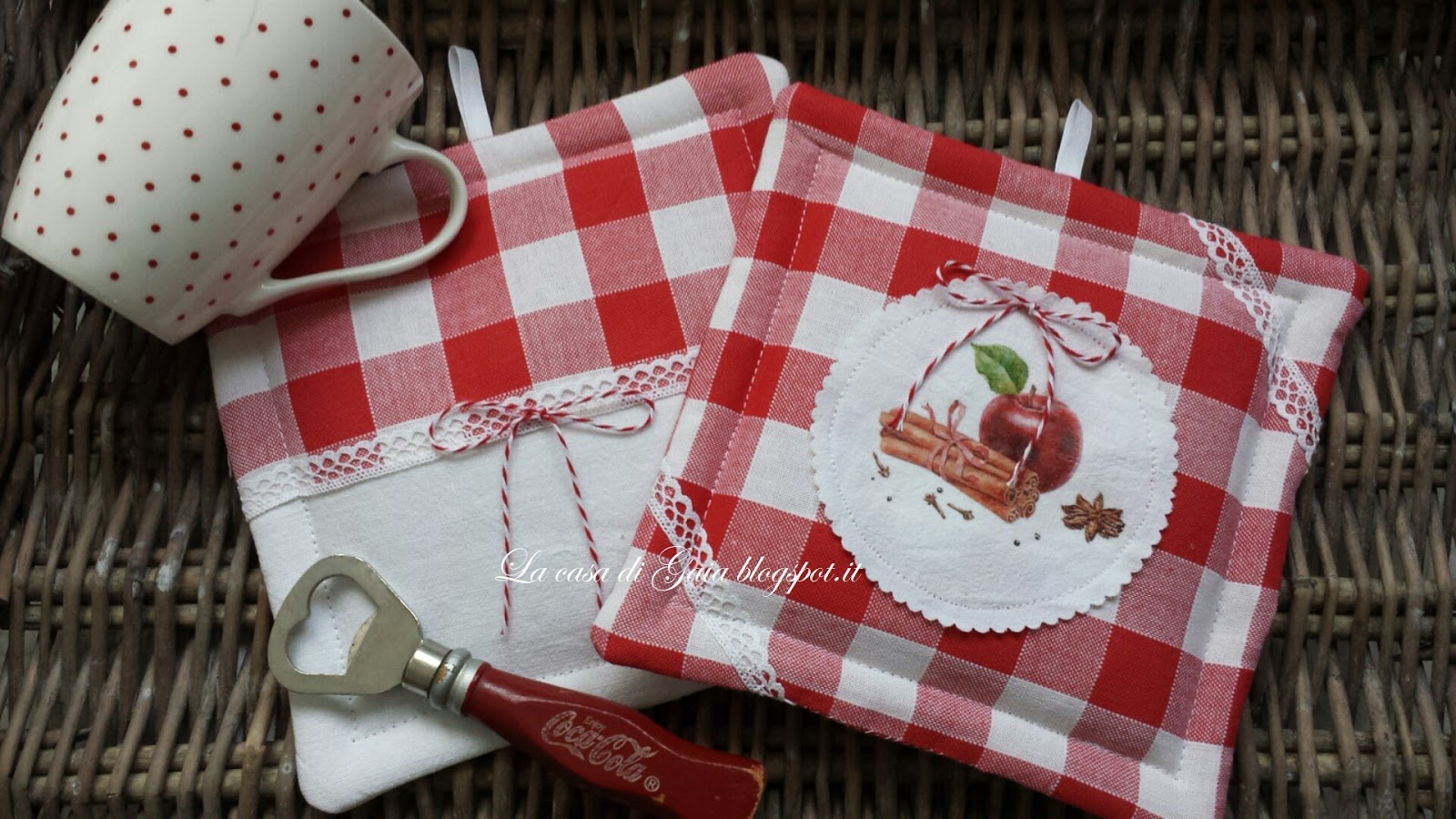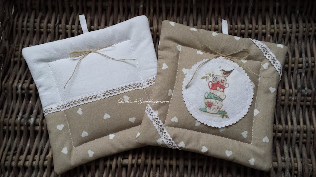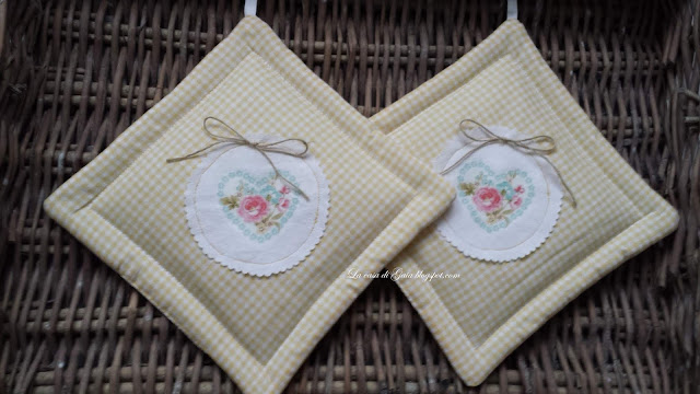 ...si insomma presine diverse..non tanto per la forma che è la classica quadrata ma per i tessuti(a mio parere carinissimi) e per i motivi che ho scelto per decorarle e renderle uniche.